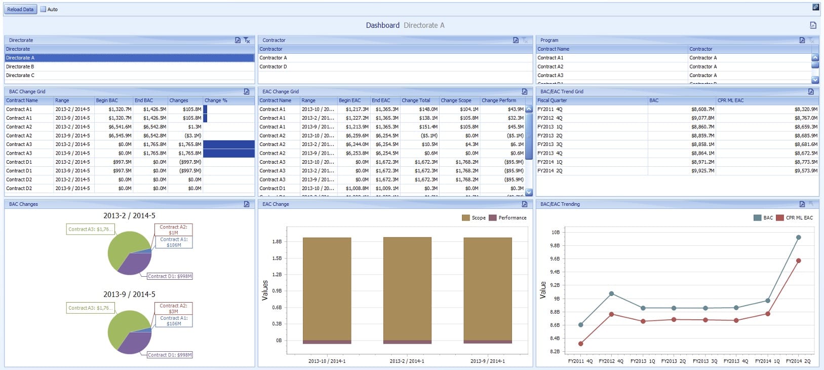 Aggregate project performance data into portfolio’s by programs, contractors, directorates, mission capabilities and so forth.