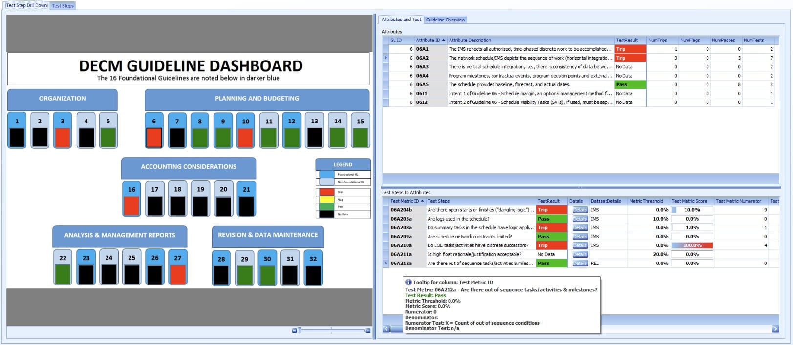 Calculate and report out the DCMA Earned value Compliance Metrics (DECM)