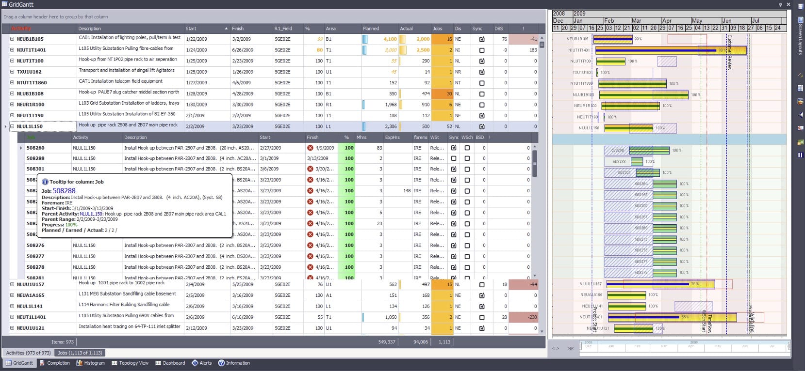 Integrate systems such as schedule data from an Integrated Master Schedule with external systems such as Enterprise Resource Planning (ERP), Quantifiable Backup Data (QBD), supplemental schedules and so forth. Drilling down into a task shows the related records from the external system.